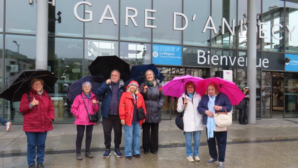 Au mois d’avril, par une journée pluvieuse nous étions 8 courageux à bord du Léman Express à nous rendre à Annecy. Trois autres retraités nous ont retrouvé sur place pour un bon repas bien au chaud. La visite de cette belle ville se fera quand le soleil nous accompagnera.