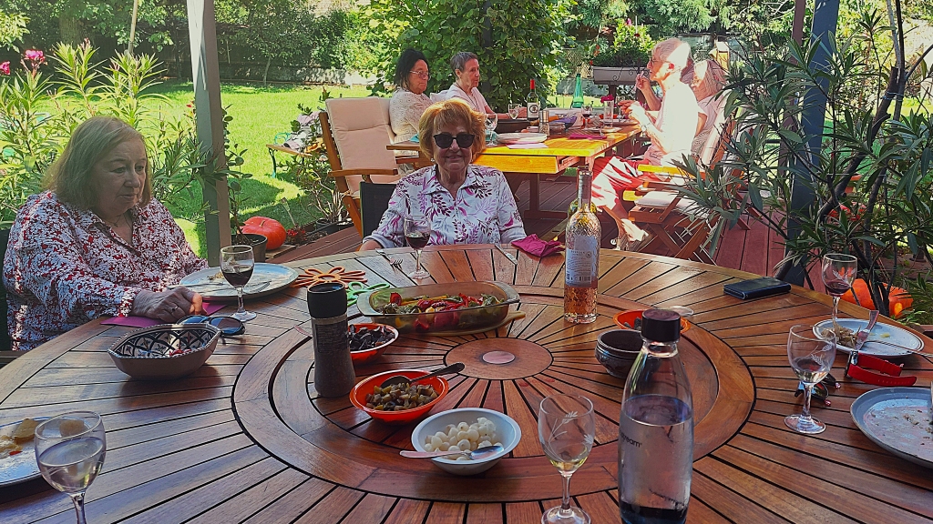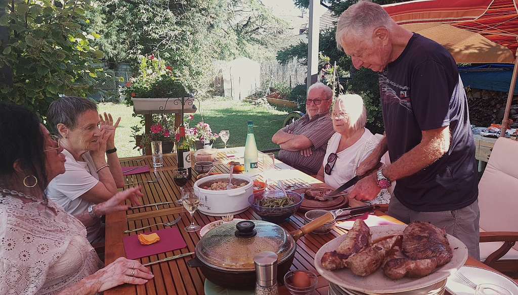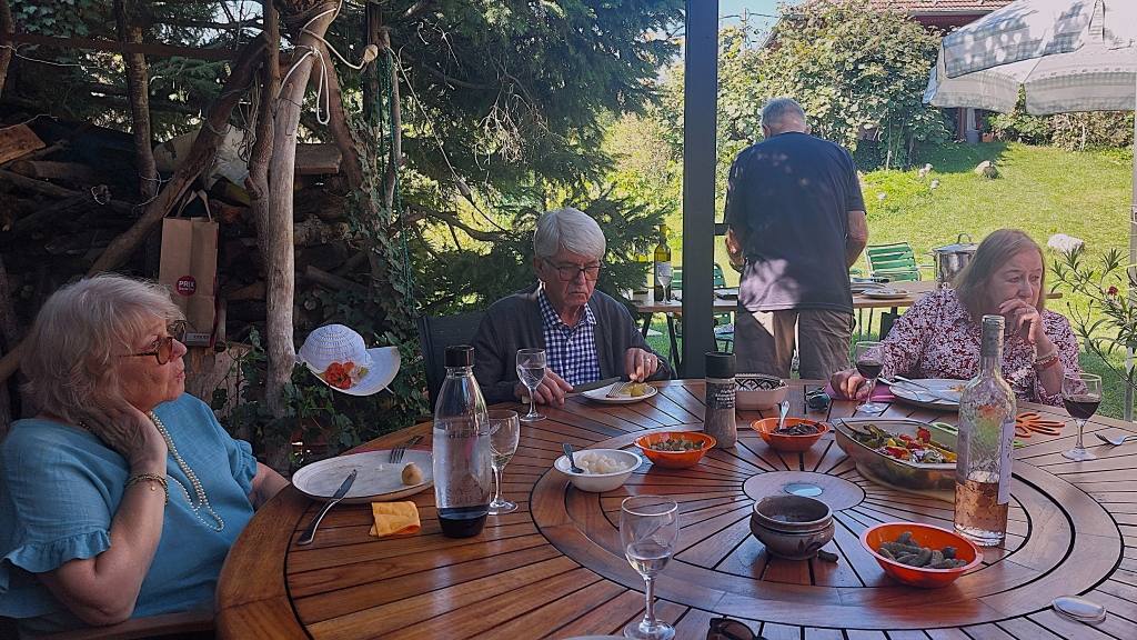 Par une magnifique journée ensoleillée de septembre nous étions reçus chez Guy et Michel à Cessy. Nous avions le choix entre des grillades et une raclette. Les 14 convives ont aussi dégusté des délicieuses tartes pour le dessert.