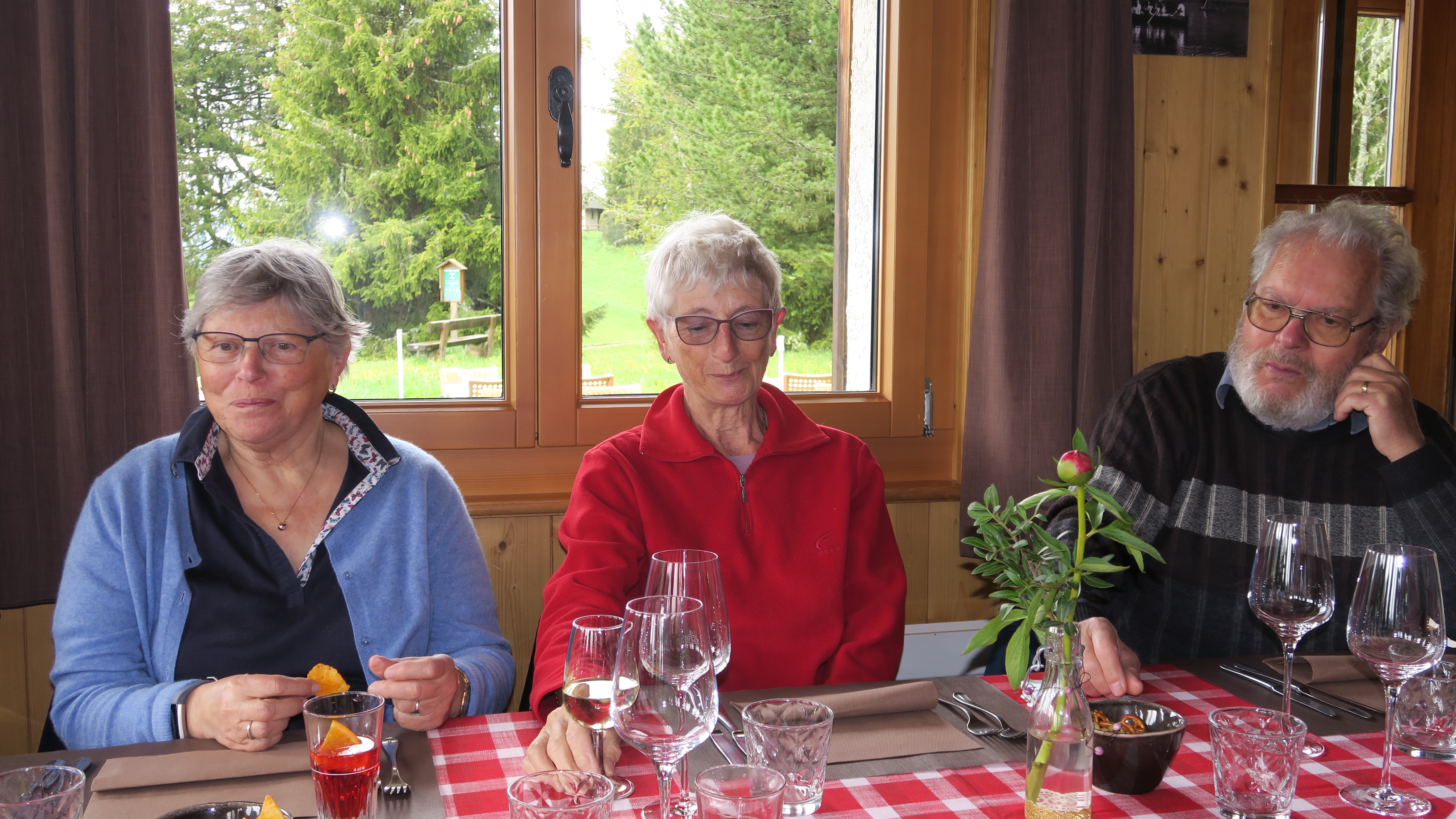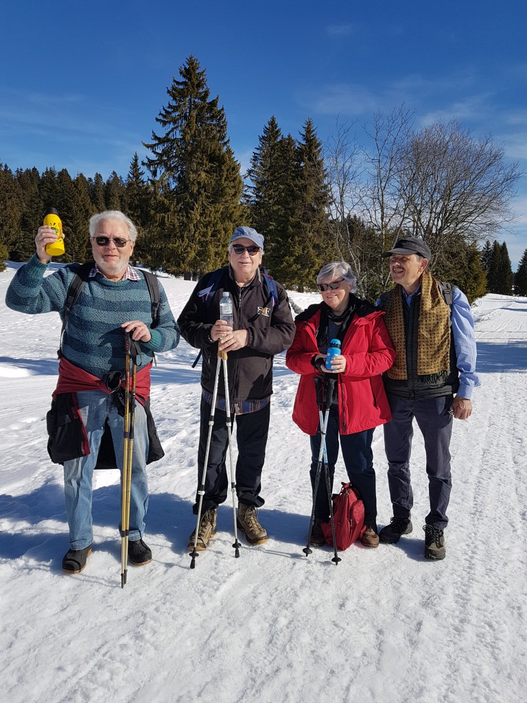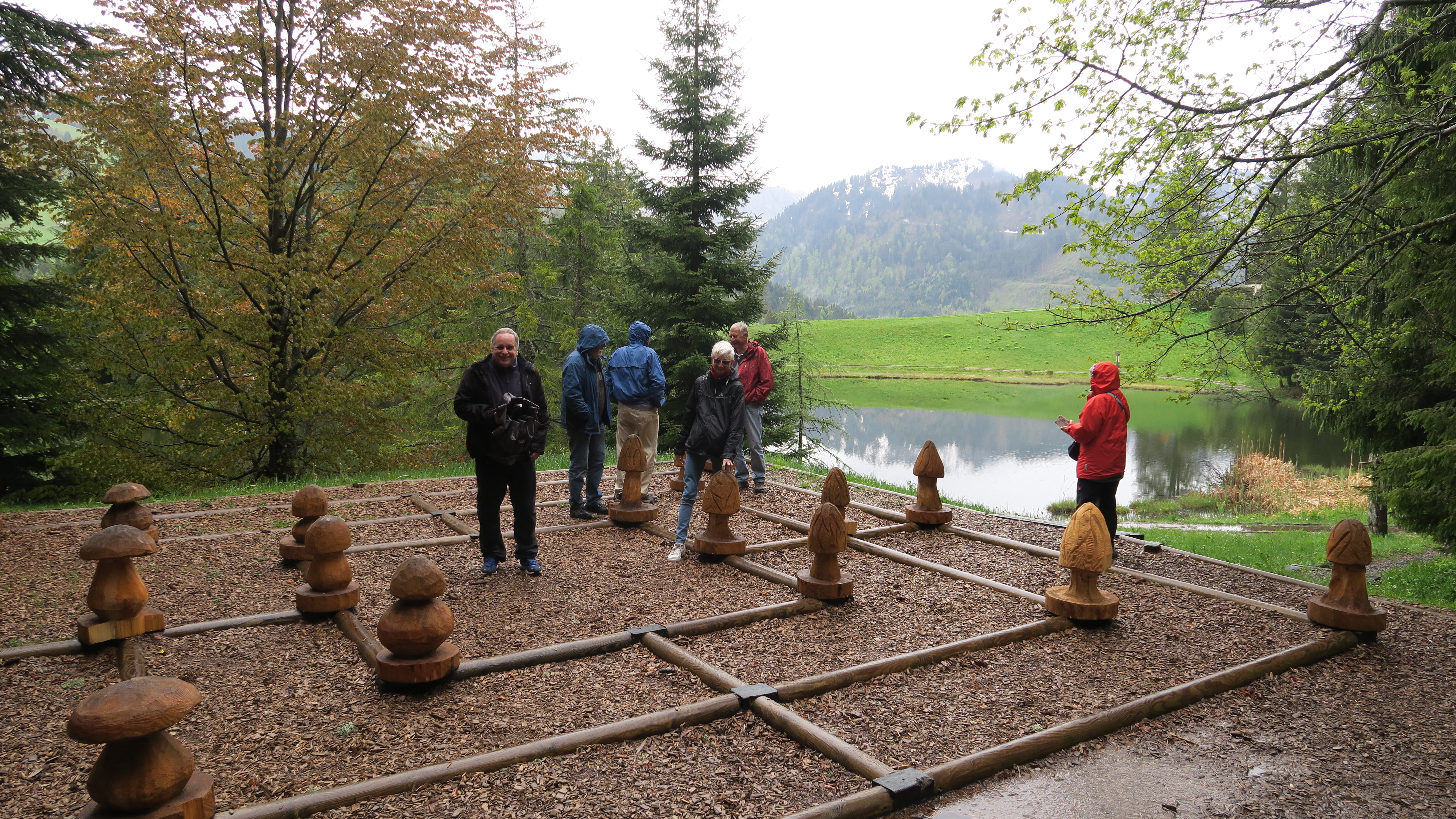 Sortie par une journée pluvieuse, la bonne humeur est quand même de la partie. On a fait le tour du Lac des Joncs, dans la station des Paccots (Fribourg), avant de déjeuner dans l’Auberge du Lac des Joncs.