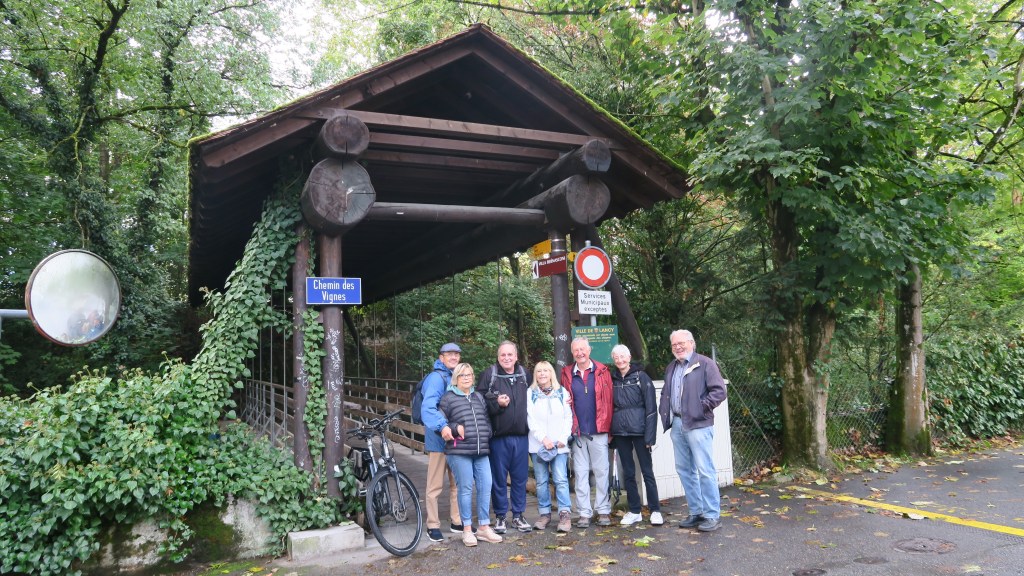 Promenade le long de l’Aire de Lancy Pont-Rouge à Lully en passant sur le pont du Centenaire. 7km à plat jusqu’au restaurant Les Curiades où nous avons très bien déjeuné.